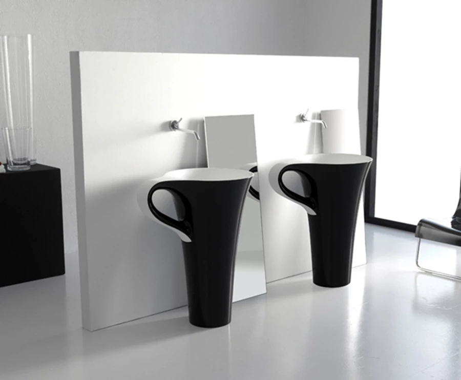 כיורים 'פרי סטנדינג' של חברת 'Artceram' בצורת ספל. רשת 'נגב'.