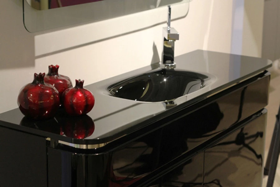 כיור שקוע במשטח. רשת 'עמודי שלמה'. חומריות