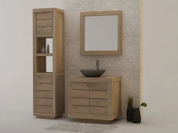 יחידת אחסון של חברת 'סאיננדוסה'. 'עמודי שלמה'.מגמות בעיצוב: 1. שימוש ביחידות 'מרחפות' (התלויות בגובה של כ- 10-20 ס"מ) מעל לרצפה, למשטח, בהן ניתן לאחסן את הפריטים לשימוש תדיר. היחידות המרחפות יכולות לעמוד בזכות עצמן, או מתחת למשטח. 2. שימוש ביחידות אחסון מגוונות בחדר הרחצה, לצרכים משתנים – לדוגמה: מדפים למגבות, יחידות נשלפות למוצרי ניקיון, מגירות למוצרי טיפוח וכד'. 3. שילוב ארוניות 'פרי סטנדינג', עליהן ניתן גם להניח אקססוריז מגוונים. 4. שילוב שידות בסגנונות עיצוביים שונים, עם או בלי ויטרינות, כחלק מחדר הרחצה. 5. שימוש בקונסולה, שעליה משטח, כרהיט ייחודי לחדר הרחצה. 6. תוספות של דלתות בצבע ייחודי ו/או ידיות מסוגננות יעניקו לחדר הרחצה מראה ייחודי.