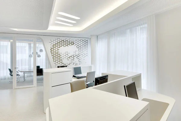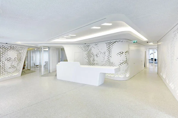 מוטיב מרכזי זורם ואמורפי בעיצוב בנק בשוויץ