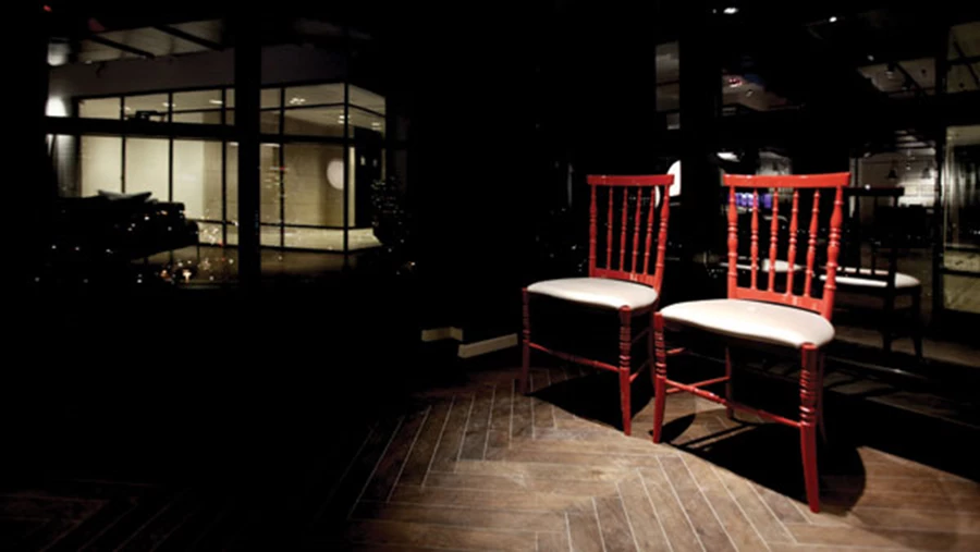 את פינתו הקטומה של החלל ייעדה ראובני לשמש כ"פינת צפייה בנוף" ולצורך זה הציבה בה שני כיסאות אדומים, אשר בגונם העז והמפתיע מתקבלים כאלמנט פיסולי. "נוף כזה אסור להחמיץ" אומרת ראובני שמיקמה אותם מול הויטרינות הגדולות החושפות אותו מלוא חופניים, ובתוך כך מדגישות את הרעיון שהוליד, למעשה, את סיפורו של העיצוב.
