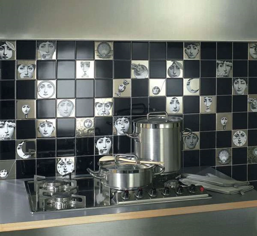 כאשר מתכננים את החיפוי למטבח כדאי להחליט האם ללכת על משטחים גדולים (פלטות של אבן טבעית, פלטות זכוכית וכד') או על אריחים קטנים יותר (אריחים ריבועיים או מלבניים, פסיפס וכד'). בדרך כלל ככל שהאריח או המשטח גדולים יותר, הדבר יצור מראה נקי יותר מבחינה עיצובית.