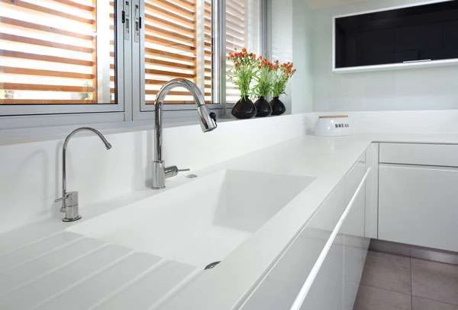 יתרון – חומר עמיד ואנטי בקטריאלי שניתן ליצור ממנו משטח וכיור אינטגרליים.