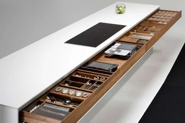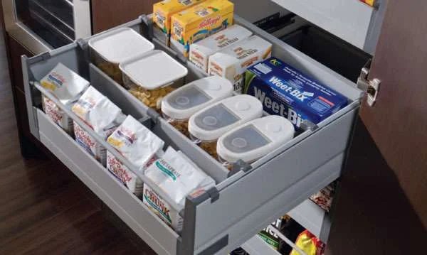 - | מגירות נשלפות - במטבח המודרני נעשה שימוש הולך וגובר במגירות נשלפות במקום במדפים. המגירות הנשלפות יכולות להיות בשליפה מידית (דוגמת מגירת הסכו"ם, או מגירת כלי הבישול) או מוסתרות בתוך ארון (דוגמת ארון המזווה). מגירות נשלפות מאפשרות אחסון יעיל יותר והוצאה והכנסה של פריטים בצורה נוחה יותר, כשמלוא תוכן המגירה פרוס לפנינו . המלצה: בחלקים הגבוהים ביותר במטבח אין טעם לשלב מגירות נשלפות מאחר וממילא אין נגישות קלה לאזור זה. במקרה של ארון גבוהים במיוחד ניתן לשלב מדפים קבועים בחלק הגבוה ביותר של הארון. טיפ: בדקו את כושר ההעמסה של המגירות, על מנת לוודא שאלה מתאימות למטרתן וכן – רצוי מגירות רחבות (90 ס"מ) על מנת ליצור ניצול יעיל של שטח האחסון. |