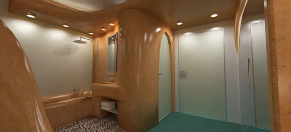 מלון בוטיק DUNE PLAZA, הצעה לעיצוב חדרים בבתי מלון: שומני דה לה זרדה – אדריכליםהחדר מעוצב להעניק חוויה טבעית טוטאלית בקווים זורמים וחופשיים כשכל המבנה בפנים והאלמנטים שבו מהווים מיקשה אחת.
