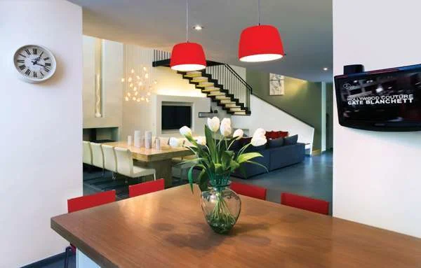 עיקר התהליך בוצע בקומת הכניסה. מעבר למלאכת עיצוב מערכות ריהוט באזור, הדרישה הייתה להוסיף למרחב הסלון, פינת האוכל והמטבח, גם אזור אירוח אינטימי שיתפקד לצד חלל הסלון. במסגרת עיצוב הבית, מעצבת הפנים, ברלר, הותירה את המטבח והסלון במיקומם המקורי, אך פינת האוכל הועתקה למרחב המשותף, וכך הגדירה המעצבת את כל האזורים בחללים בבירור וסיפקה מרחב מחייה נוח שניתן להרחיב בהתאם לצרכים.