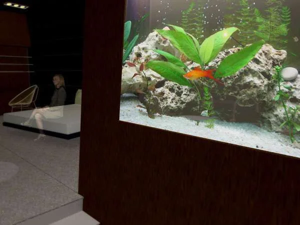 Blip - אלמנט האקווריום כחיץ בין המבואה וחדר הרחצה, יצהר גלמידי