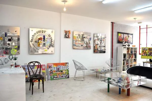 חלל הסטודיו של בלקינד-שפס. ביפוממד הצבעוניות, אחד המאפיינים הבולטים באמנותה, אשר במהלך השנים, במקביל לשינויים ביוגראפיים של חייה עבר שינויים- משחור לבן, דרך פסטלים רכים ועד צבעוניות ניאון עזה, משתלב בדירה באמצעות עבודותיה הססגוניות שפזורות בחלליה השונים, כמו גם באמצעות קירות שנצבעו בגוונים עזים או פריטי ריהוט כאלה ואחרים המתהדרים בהם.