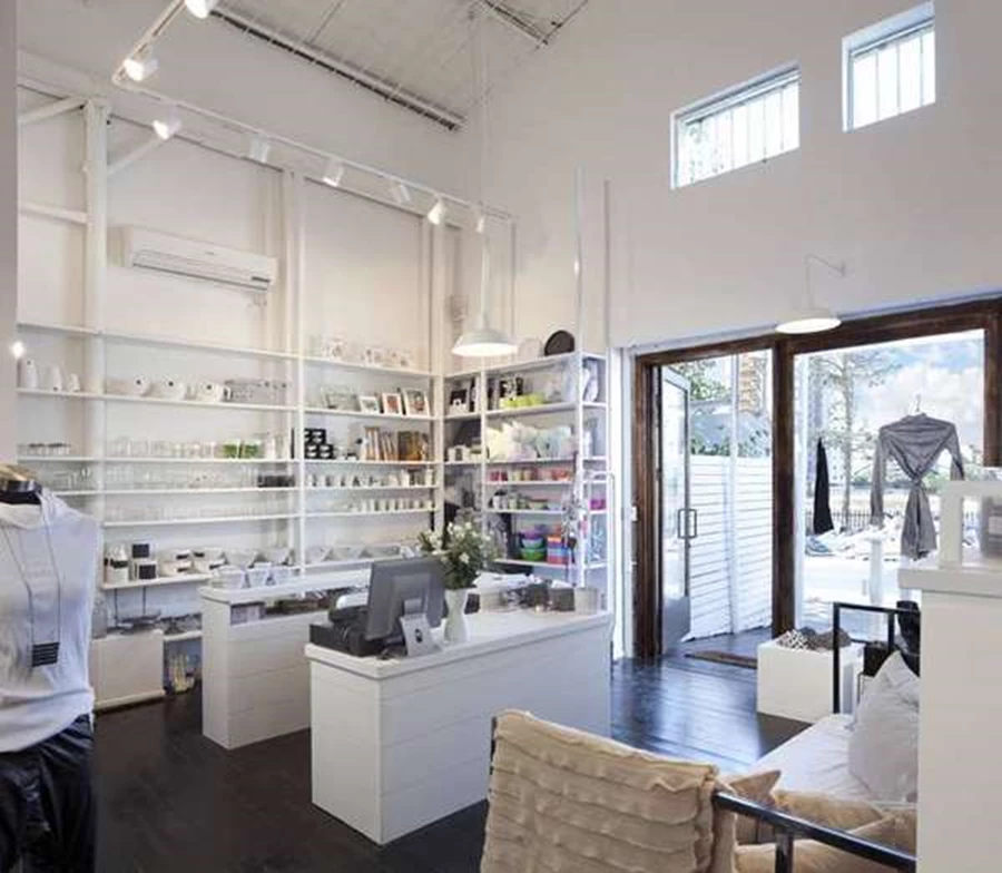 התמה שלהן"תמה", חנות בבעלותן של האדריכליות שרון ויעל תעוז, שתצוגתה משלבת פריטים מעולם האופנה והלייף סטייל, ובכלל זה כלים לבית ומוצרי טקסטיל, העתיקה את משכנה להאנגר תעשייתי גבה תקרה משופעת, המעניק במה רחבה יותר להצגת הפריטים המעוצבים שמיובאים על ידה ארצה. תכנונו האדריכלי של המקום נועד לשמר את נתוניו המרשימים, ובה בעת לייצר בו תחושת אינטימיות ע"י חלוקה לאזורים המדמים חללים ביתיים, כאשר החומריות הטבעית בה נעשה שימוש מעצימה את התחושה. כל האלמנטים בחללה של תמה מביעים אהבה לעיצוב מודרני, וכך נוצרת חוויה כוללת המשלבת עיצוב וטעם טוב, מעניקה השראה, ומאפשרת למבקרים/ות במקום להתפנק ולפנק את עצמם.