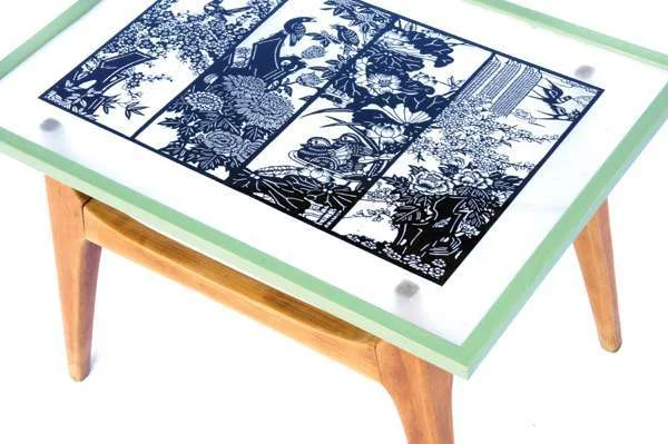 בסיס עץ של הדום ישן שבגלגולו החדש מהווה בסיס לשולחן צד קטן, שמשטחו העליון הוא גזיר נייר יפני נתון בתוך מסגרת זכוכית כפולה. 'ענוצ'קה'.אהבה "מאז ומעולם" כדבריה, לחומר וליצירה, מלווה אף את האמנית אריאלה כסלו, והעניין הגנטי, מסתבר, משחק גם במגרש שלה "אבי היה יצרן רהיטי במבוק, גדלתי בקרבת התחום היצרני-יצירתי, ובמסגרת זו התוודעתי גם לעולם הרפדות. כששהיתי מספר שנים בדרום אפריקה אפילו לקחתי קורס שעסק בכך" מספרת כסלו, בוגרת "בצלאל" במחלקה לעיצוב גראפי (מה שנקרא היום תקשורת חזותית) הזוקפת לזכותה רזומה יצירתי מרשים דווקא בעיצוב קרמי.