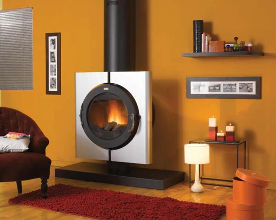 קמין הפועל על דלק מוצק - שאריות של תעשיית החקלאות הופכות לחומר בעירה ממוחזר ומוצק - פתיתי דלק אורגאני. היתרון הוא שימוש חוזר בפסולת וחסכון ניכר בצריכת האנרגיה.