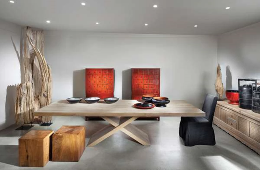 החפצים המעוצבים ופריטי הריהוט המוצעים בגלריה LOFT, עושים דרכם אליה מאירופה ומהמזרח הרחוק, ובבסיס כל אחד מהם עומד סיפור מעניין שהביא לבחירתו והכללתו באוסף הגלריה. בתמונה: שולחן אוכל מעץ ELM גושני, שידות תרופות סיניות עתיקות שנרכשו מאספנים ועברו שיפוץ, וגופי תאורה פיסוליים עשויים מעצי סחף.
