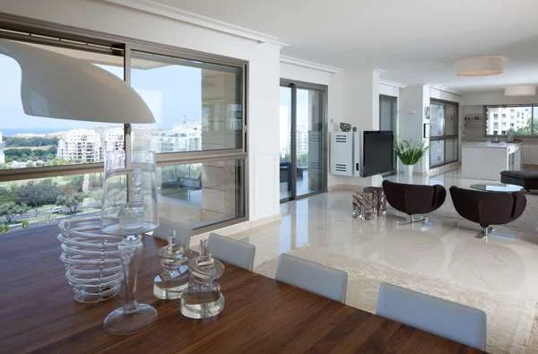 עם נוף ים המשתרע מולה ועוטף אותה מבעד לויטרינות גדולות, הדירה שעיצבה מעצבת הפנים זיוה גורסקי מתהדרת בחזות מינימליסטית ואנינה המבקשת לפנות לו מקום ראוי