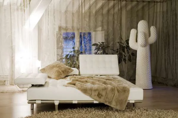 עם זאת, למרות השילובים הדומיננטיים והממד הדרמטי שהם מייצרים כעין רצף של תפאורות, מדובר בחלל רגוע ומינימליסטי בעיקרו, המאופיין בתחושת מרחב אוורירית ומשמש את המשפחה הצעירה המתגוררת בו (זוג ושני ילדים) בנוחות ובנועם. הצבעוניות נשענת על גון לבן בו משתלבות נגיעות קונטרסטיות של שחור, ושפת עיצוב הבית המוקפדת עדכנית ומצומצמת- משלבת פריטי ריהוט מעטים יחסית לגודלו של החלל, אך בעלי נוכחות רבה, מובחרים ואנינים. כך לדוגמה, מערך הישיבה בסלון, המשלב ספה נינוחה ומזמינה עם מושבים עצמאיים מסוגננים ואייקוניים, שולחן האוכל הלבן לו צוותו כיסאות שחורים ושני גופי תאורה לבנים וגדולים המשתלשלים מעליו, או פרגוד החוצץ בין מרחב הסלון לבין הכניסה למעבר החדרים.