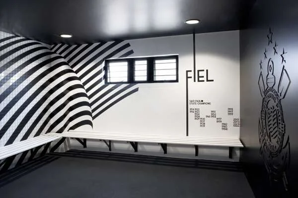 ביטוי צבעוני של שפה חזותית עשירה במסרים וסמלים מעולם הכדורגל בחדרי ההלבשה בצבעי מדי יובנטוס בשחור.
