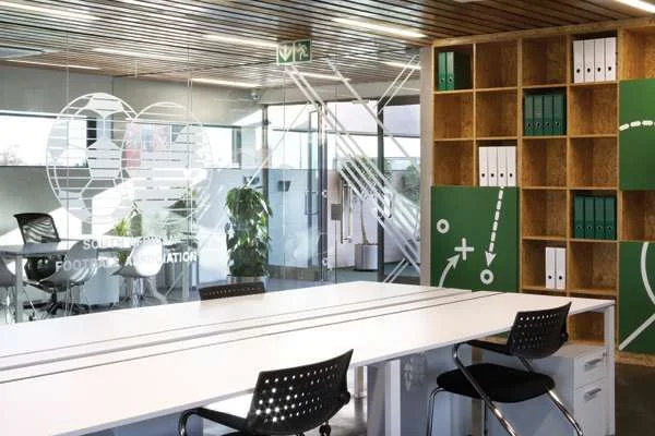 משרדי ההנהלה בקומתו השלישית של המבנה.קומת הכניסה כוללת מועדון ולאונג' שעוצבו כמו מוזיאון המוקדש כולו לתרבות הכדורגל. במרכז החלל שולחן כדורגל, ופינת ישיבה שתוכננה כיציקת בטון בצורת ר' הצופה לקיר מדיה ענק עליו מוקרנים משחקים בשידור חי לחברי המועדון. על משטח מוגבה הוקצב אזור המיועד ל- 12 עמדות מחשבי אפל המיועדים למצגות ופרסומות של חברת נייקי ולגלישה באינטרנט, ולצידם מוקמו מתקני תצוגה של אביזרים הלקוחים מההיסטוריה של הכדורגל, כגון כדורים ונעליים של שחקנים מפורסמים. במרכז החלל שולבה מחיצת עץ המכונה "קיר הגיבורים" עליו חקוקים שמותיהם של שחקנים מפורסמים, וקיר נוסף מוקדש לגביעי הקבוצות הזוכות בטורנירים המתקיימים במועדון.