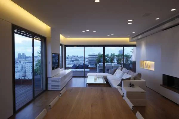 מראות נוף המלווים את מרחב המגורים הם לעולם גורמים המרחיבים את הנשמה ואת הלב, וכך, הסיבות לרכישת דירת הגג השוכנת בגבעתיים אכן היו המרפסות העוטפות אותה, מחדירות את מראות העיר פנימה לתוך חללה, ומייצרות קשר ישיר עם החוץ. הדירה משתרעת על שטח של כ-150 מ"ר + כ-60 מ"ר מרפסות, והרעיון שהנחה את האדריכלית מרים בן יעקב בתכנון חללה היה לשמור על הקשר המתקיים בזכותן עם החוץ- אם באמצעות פתיחות מקסימאלית שלא תחסום אותו גם בעת השהייה בפנים, ואם באמצעות בחירת מארג חומרי מאופק שישווה מראה נקי ולא "יגנוב את ההצגה".