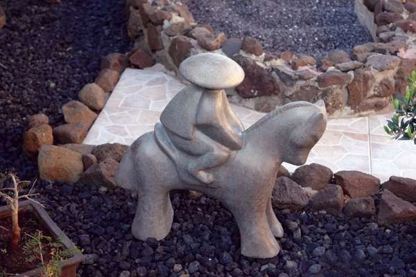 שאני מביטה בתמונה יפהפייה. העין מתבוננת ומתחילה להבחין בפרטים. יד אמנית שרטטה ציור מאבני טוף שחורות, חלוקי אבן לבנים, אבני צפחה וצמחים גזומים, שעלוותם, ירוקה, אפורה, ארגמנית או צהבהבה. בין החומרים השונים והצמחים מסומנים גבולות ברורים, ובין לבין מפוזרים פסלים מאבן שיש, שניכר מיד כי "רוחם" יפנית, ועציצים עם צמחים. צייקו וצבי, בעלי הגינה, קבלו את פניי, וכמו הגינה גם ביתם נפתח לרווחה: ציורים ופסלים של צייקו פזורים בכל פינה בו, אף קירותיו נצבעו וצוירו על ידה, ובחוץ עוטפת אותו הגינה כמו תמונה נפלאה.