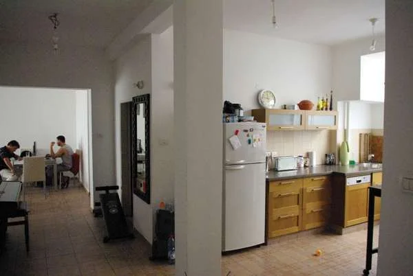 המטבח והחדר ש"בוטל" לפני השיפוץ.