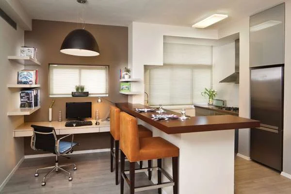 במקום החדר "שבוטל" - פינת עבודה מעברו השני של הדלפק.עיצוב חדר הרחצה