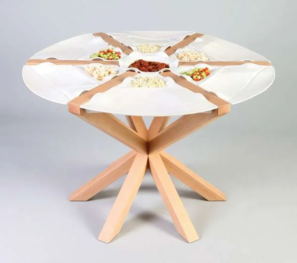מערכת כלי הגשה החוסכת מקום על שולחן האוכל ומתייחסת לאינטראקציה נעימה בין הסועדים כשהכלים נעים כמעין "סרט נע". המערכת מורכבת מבסיס מודולארי הנחלק לשתי מסילות בסיס ומסילות אמצע הניתנות להתאמה לאורך השולחן. הקערות נעות על המסילה בנפרד או כ"רכבת", ובתחתיתן ישנו ציר התוחם אותן בבסיס המסילה ומאפשר להניחן גם על השולחן.