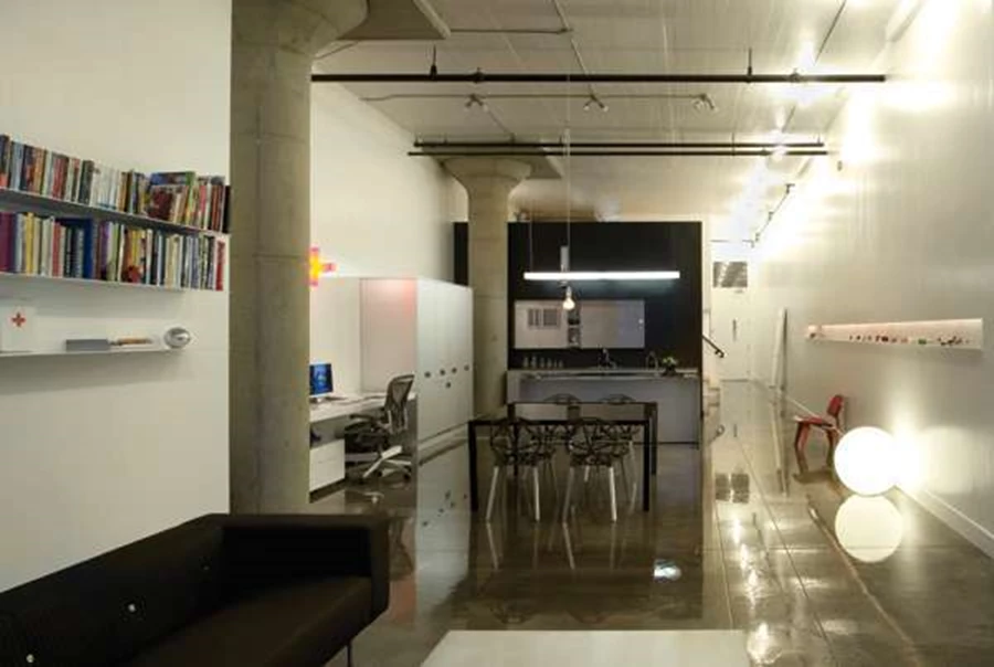 חללו התעשייתי של בית דפוס ישן, שהיה ממוקם בבניין היסטורי שהוסב לשמש למגורים בסן פרנסיסקו, הפך ללופט נחשק. האדריכלית אירית אקסלרוד החילה עליו את תפיסתה הדוגלת בנאמנות לערכי כנות חומר וצורה, והעניקה לו פרשנות אסתטית עכשווית המקפלת בתוכה את רובדי תכניו המקוריים