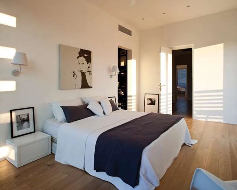 יחידת ההורים פונה אל החזית האחורית. ריצוף החלל (כמו גם של כל חלל הקומה) נעשה בפרקט עץ אלון
