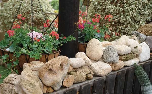אל גינתם של מופיד ופטמה מלחם הגעתי ביום חורפי - גינה עטופה חומה ששוכנת בכפר מכר הנמצא בסמוך לעכו. כותרות עצי תמר מצוי ומיני דקל נוספים קבלו את פניי בברכה, ואדניות עם פרחי עונה רמזו, כי בפנים ממתינה הפתעה. שער מתכת כחול ומעוטר בפרחים מוביל אל חצר מרוצפת ברובה, וערוגות עם פרחים וצמחים המקנים מראה טרופי ופרחים עוטפים את הגינה: רקפות וזני פלרגון במכלים ועציצים הפזורים בכל פינה בה. אך יותר משפע הפריחה ומגווניה הוקסמתי מעבודת האבן, שמעניקה, למעשה, את החותם והייחוד לגינה. הגדרות, הערוגות ושאר המתקנים, שמשולבים בשטחה נבנו במעשה אומן, כשעיצובם הייחודי, עיצוב מסורתי באבן, יוצר הרמוניה ומסגרת לצמחיה. ישבתי באחת מפינות הישיבה שפזורות בגינה, הקשבתי לפכפוך המים שבוקע ממפל קטן, קפה מהביל הוגש במהרה, ואני הרגשתי כי אני מצויה בארץ רחוקה.