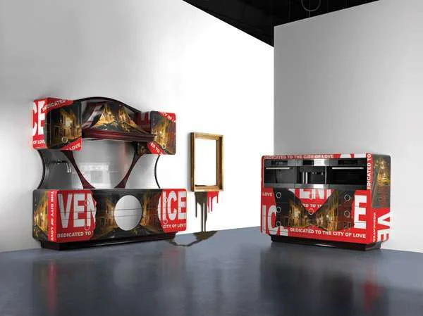לנועזים, לחובבי הומור וקריצה- אמירה מסוג שונה בתכלית: מטבח בעיצוב לא שגרתי עם חזיתות מהסרטים (פוסטרים). Marco polo המטבח כמעוז טכנולוגי