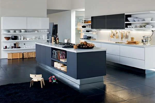 יחידת אי / מטבח שעיצובה ניתן להתאמה אישית בהתאם לצרכים: עם.ללא חזיתות, כנף עליונה מתיינדת וכד. Schiffini - קווי עיצוב במטבח - בגדול, קווים נקיים וישרים ממשיכים לאפיין את עיצוב המטבחים, אך לצדם ניתן להבחין בחדירתו של מוטיב מעוגל המופיע בדרגות כאלה ואחרות - אם כיחידות המעוצבות בקו מעוגל מובהק, ואם כניואנסים בלבד, דוגמת יחידות בעלות "פינות" המתעגלות קמעה ומקנות מראה רך. מאפיין נוסף הוא משחקי גבהים הנגזרים מאופיין של היחידות השונות המוצבות בחלל המטבח בסוג של "חופש" (לאו דווקא בצמידות או בקו המשכי), ובתוך כך מייצרות מראה מגוון ועשיר יותר. בגזרת העיצוב אפשר לציין גם חזרה כלשהי לסידור פינתי "קלאסי" יותר, שמסתמך פחות על יחידת אי המרכזת בתוכה מכלול פונקציות.