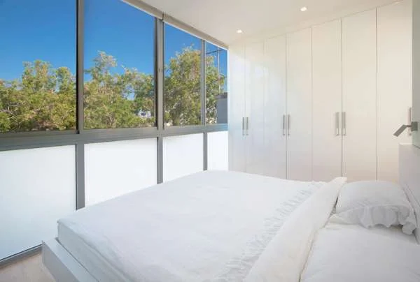 מכל מקום רואים ירוק: השטח הירוק המשתרע בחזית האחורית חודר אל חלל יחידת השינה דרך חזיתה השקופה.