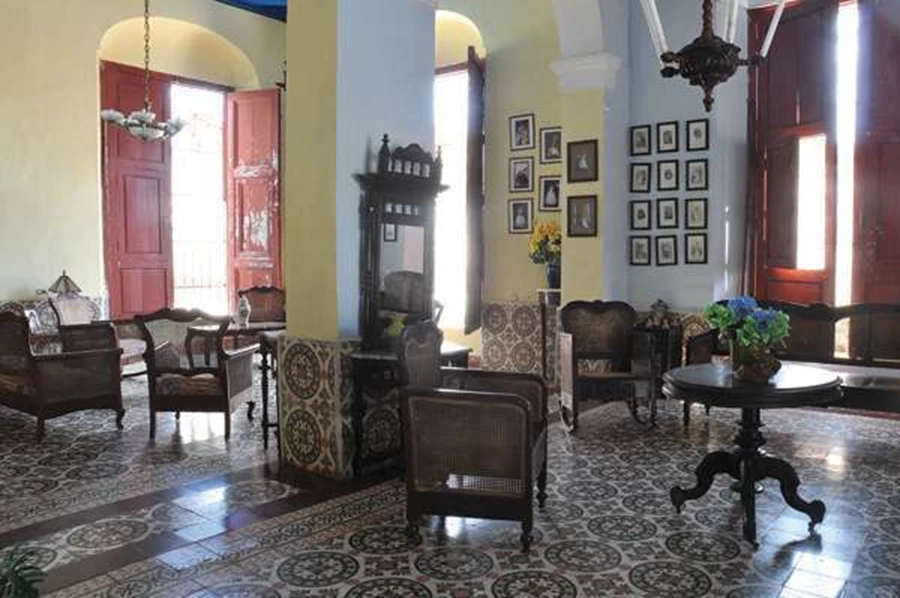 פריטי הריהוט הרבים שניצבים בחללי האירוח מגלמים בעיצובם סגנונות וחומרים שרווחו בתחילת המאה שעברה, כעוד עדות לזמן שעצר מלכת: שימוש כמעט מוחלט בעץ כהה וקישוטיות רבה. מרבית הפריטים אותנטיים ומאופיינים בקווי עיצוב עשירים ומרובי פרטים, ובמקרים מסוימים, לדברי חוליו, כשנאלצו להחליף פריטים שהתבלו אחרי שהזמן נתן בהם את אותותיו, עיצובם האותנטי הועתק בפריטים החדשים. כך אפשר למצוא כאן מיני כורסאות (ספות כמעט ואינן בנמצא) שולחנות צד, שולחנות אוכל, שידות וויטרינות, וכמובן כיסאות נדנדה המהווים חלק בלתי נפרד מסדר היום הקובני ושכמותם מצויים בכל בית. את הקירות מעטרים תצלומים רבים של בני המשפחה ושל האזור, והחללים כולם משופעים בשלל קישוטים, חפצי חן שונים ופריטי נוי בסגנון "קיטש" כפרחי פלסטיק צבעוניים או פסלוני פורצלן נאיביים, המדיפים ניחוח חזק ורחוק של שנים עברו.
