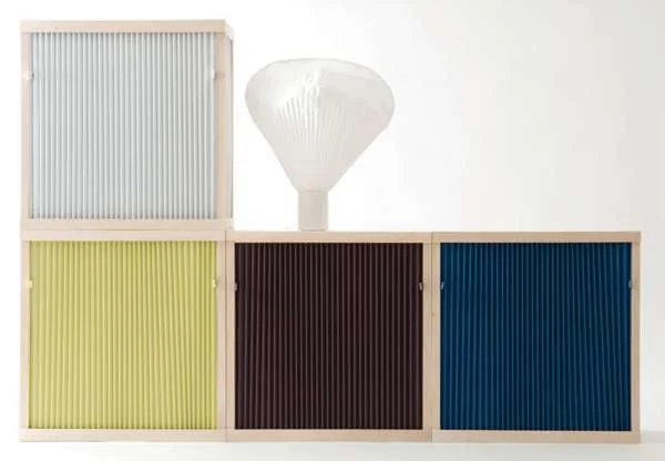 יחידת אחסון בקווים מקיים במראה קובייתי משהו וחזיתות בגוונים שונים.