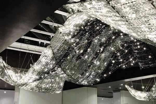 הגלריה הלבנה ברומא בעיצובם של קארים רשיד ומיקלה ויאנלו ליצירת המשטח הגמיש סייעו הרקע האמנותי של ויאנלו וניסיון שצברה בתחומי קינטיקה ואופטיקה, אשר אפשרו לה "להזיז" את הצבעים, טון אחר טון, במה שנראה כקו מובנה, ואת רעיון עיצובו היא מתארת כ"איזון בין כוחות, המתאחדים ליצירת תנועה רכה, עוטפת ומרחפת, כאשר זרימתה בין נקודות וקווים מוגדרים רוקמת טקסטורה של צורה וצבע שמטרתה ליצור שיווי משקל ויזואלי". גוף התאורה הדקורטיבי הזה הוא משטח פיסולי המורכב מ- 6000 ק"ג של זכוכית, מתכת וטכנולוגיה, המכסה 60 מ"ר משטח תקרת הגלריה, וכולל כ-80.000 יחידות Knit שיוצרו בעבודת יד. הקונסטרוקציה מורכבת ממסילות מתכת בחיתוך לייזר וגימור מראה המייצרות תחושת תנועה, כשעליהן מותקנות בהצלבה קורות עדינות. האלמנטים הזכוכיתיים מעוגנים לקורות באמצעות אביזר טכני, שעוצב ויוצר לצורך זה ע"י חברת אנדרומדה, והאור שמופץ מהמשטח מתקבל מ-5000 נורות הלוגן הפזורות כרשת שחוצה את חלקו הפנימי. בהלך הרוח של העידן העכשווי, בו צרכנים מודעים לרובדי תוכן חדשניים וייחודיים ואף דורשים אותם, יישר הפרויקט קו עם חזון החדשנות של חברת "אנדרומדה", בעלת מסורת רבת שנים בייצור זכוכית מורנו, אשר ייצרה את האלמנט והמשטח. הרבה משאבים, אומרים בחברה, מושקעים במחקר טכני/טכנולוגי ובהגדרת תכנים אמנותיים שנועדו לענות על ציפיות לאסתטיקה ולפרוץ גבולות חדשים. פרויקטים דוגמת ה-Fluxus, גולשים מעבר למוכר והידוע, וניתן לתאר אותם כהשראה להגדרת סביבה חדשה בה אמנות, עיצוב ויכולות ביצוע גבוהות מקיימות דיאלוג מרתק כמו זה המתקיים בחלל הגלריה הלבנה.