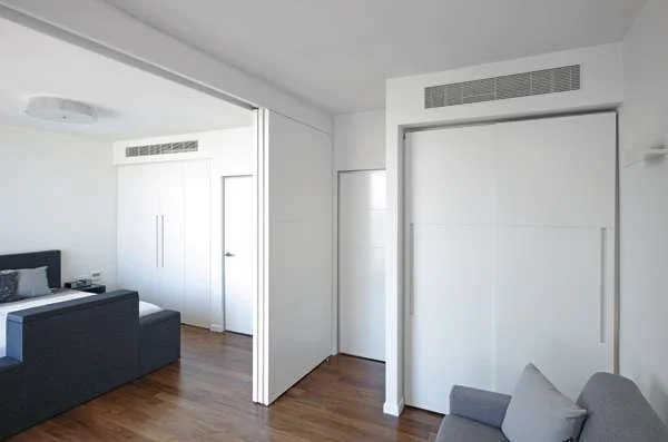 מבנה המפלסים הנתון הכתיב, למעשה, את מיקום הפונקציות - סלון, מטבח, פינת אוכל וחדר נוסף במפלס הכניסה ויחידת שינה במפלס התחתון - אך בחלוקה החדשה הן שודרגו לכדי חללים מרווחים הנהנים מנוחות שלא הייתה מנת חלקן קודם לכן. כך, לדוגמה, החדר השוכן בקומה העליונה הפך במסגרת זו לסוויטה נוחה ומפנקת כשנוסף לו חדר רחצה צמוד המאפשר לעשות בו שימוש לצרכי אירוח, ובמקביל כחדר טלוויזיה מפנק להנאת בני הבית כשהוא אינו מאוכלס. במפלס התחתון, ששטחו כלל במקור חדר וחצי עם מרפסת צמודה, אוחדו שני החללים ליחידה מרווחת הכוללת חדר רחצה נוח וחדר ארונות, ומתוכננת כשני אזורים - אזור שינה ואזור עבודה, אשר בעת הצורך ניתנים להפרדה באמצעות מחיצת הזזה. ניצול חלל והשגת פתרונות פונקציונאליים ככלל, היוו סעיף משמעותי בתכנון, וכך גם שינוי מיקומו ומהלכו של גרם המדרגות אשר בגלגולה הקודם של הדירה זרם כמהלך כפול, אפשר "לחסוך" במספר המדרגות, והחלל תחתיו נוצל לשילוב ארונות עמוקים למדי שמשמשים למגוון צרכי אחסון חשובים.
