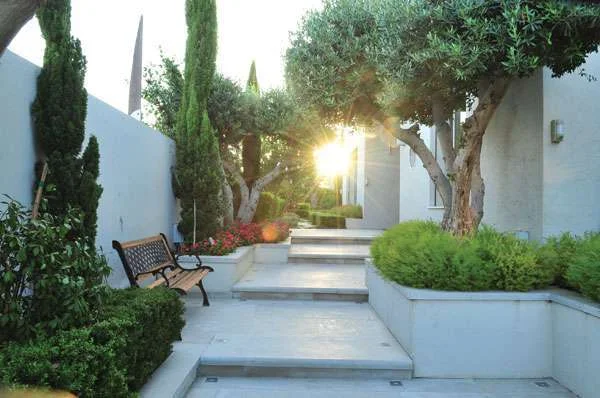 - עיצוב על פי סגנון צרפתי פורמאלי ונקי אך עם שילוב נגיעות ים תיכוניות. גן בעל מראה גזום ומסודר הנהוג בגני הצרפתיים המפורסמים המוכרים לנו כמו גני וורסאי למשל, אך חופשי ומאוורר יותר.
