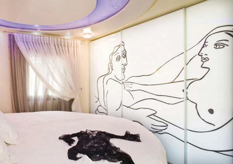 ארון קיר בשילוב הדפסה דיגיטלית המשווה מראה של קיר מצוייר. זדקהאריחיםריצוף