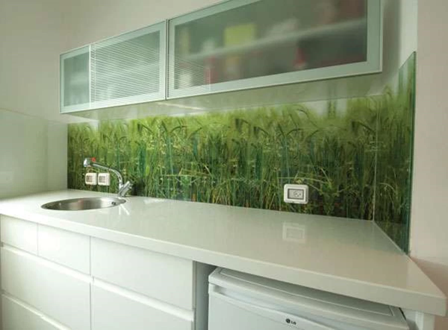 חיפוי קיר במטבח באמצעות זכוכית המודפסת בדפוס דיגיטאלי. חברת א.א. מראות.יכולות הדפוס הדיגיטאלי כבר כאן, בשירות העיצוב. מנקודה זו לא נותר אלא להמתין לכך שמעצבים, מעצבי פנים ואדריכלים ימנפו יכולות אלה כיד הדמיון והיצירתיות לקבלת תוצרים איכותיים וחוויתיים מבחינה חזותית.