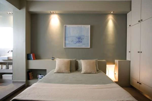 יחידת השינה של ההורים: חלל מרווח המכיל בשטחו חדר רחצה פתוח ומוגבה מעט ממישור הריצוף.יחידת השינה של ההורים היא חלל מלבב בפשטותו המסוגננת, ועיצובה נשען על אלמנטים בנויים המשתלבים עם הצבעוניות המאופקת תוך יצירת מרחב הרמוני ספוג רוגע. המיטה נתונה בתוך מערך בנוי הכולל קורה עליונה עם תאורה שקועה, ומדף עליון / גב מיטה, שצדו האחד נקטע לטובת שילוב גוף תאורה דקורטיבי במיקום נמוך ומפתיע וצדו השני משמש כסוג של שידת צד. המערך הבנוי ממשיך אל תוך אזור הרחצה הפתוח שנכלל בשטחו של החדר כשהוא מוגדר בבירור ומוגבה ממנו מעט. לריצופו משמשים אריחי גרניט פורצלן, והאמבט, כמו גם יחידת הכיור והמדפים תחתיה, הינם אלמנטים בנויים מחופים באריחי פסיפס לבנים. כך, בחזותה שלאחר שיפוץ דירות, כשהיא עטופה בפתחים המחדירים לחללה את סביבת החוץ, ודבר בה אינו משתלט או מוקצן מידי, נראה שהתכנון השיג את מטרתו- עיצוב המשלב "ענייניות" - עכשווית עם רכות שלווה, ומאחד אותם במרחב מגורים נוח ונעים ל-כ-ו-ל-ם.