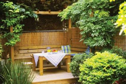רהוט גן פינת ישיבהנושא מיקומה של פינת הישיבה בחדרים החיצוניים מקבל משמעות חזקה יותר כשמדובר בגינות קטנות. במצב זה מומלץ למקם אותה מול המימד הרחב של הגינה ולא מול המימד הצר. כלומר, במקום ממנו נשקף נוף רחוק יותר, שאינו נעצר בקיר הבית או של בית השכן ממול.