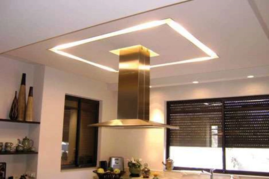 תקרה צפה מלוחות גבס בשילוב גופי תאורה שקועים. אורבונדשימושים עיקריים בלוחות גבס: