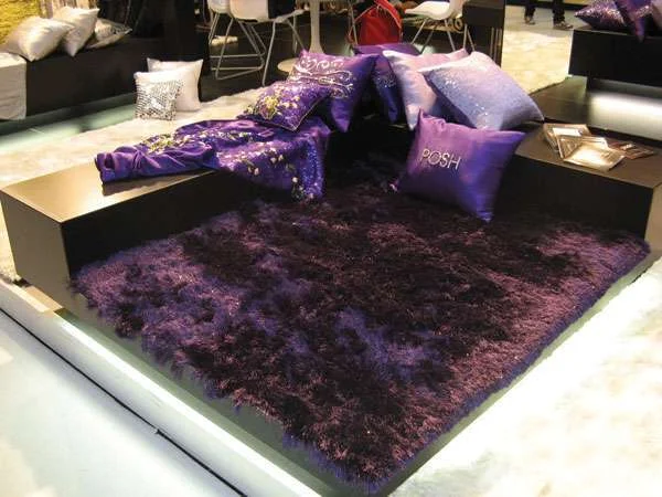 שטיח מסוג שאגי מסיבי פוליאסטר משולב עם סיבי לורקס זוהרים, בצבעוניות עזה, של חברת Posh הבלגית. יבואן בארץ: שאפור - צמר – שטיחים יפים שטיחים - חומריות וטקסטורה