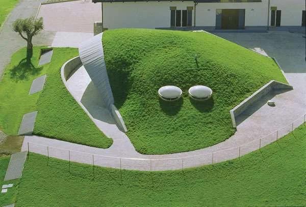 הגפנים בגבעות ה"לנגה" מכסות את השטחים הפתוחים בין העיירות בגוונים מדהימים של ירוק ולכן כשנבנה היקב החדש "קשינה אדלאידה" ליד הבית ההיסטורי שבעיירה ברולו, שמר האדריכל Ugo Dellapiana על "פרופיל נמוך" והסווה את המבנה תחת הדשא. האדריכל דלפיאנה מוכר בעיקר בתחום השיקום של תיאטראות, בהם התיאטרון של אלבה, ואת היקב בנה בשקיפות המהווה את הרעיון המוביל של התכנון-עיצוב.