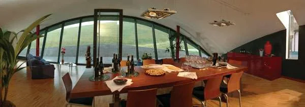 חדר הטעימות נמצא בקומת המסד ומשקיף דרך הפתח הגדול אל הסביבה.