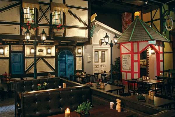 אזור הדיינר- צבע, ציורי דמויות בלבוש מסורתי אופייני, ומעליהם חלונות הקומה השנייה של הבתים המחופים גג רעפים. החלל הנחשף לעין נחלק לשני אזורים: מימין לכניסה ישנו אזור מאורך, מרוצף עץ ומוגבה מעט ממישור כלל המרחב, שהישיבה בו היא בסגנון "דיינר" על ספות וכורסאות נוחות והוא משקיף אל "כיכר העיר". כיכר העיר היא, למעשה, מרבית שטחו של החלל, שחזותו הציורית מעבירה את הבאים למחוז הפנטזיה, למקום אחר ולזמן אחר.