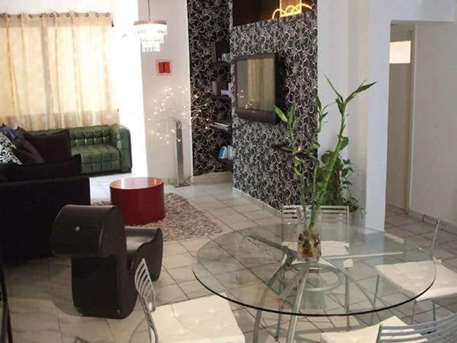 כיוון שהחלל הציבורי הוא צר וארוך, הוחלט לחלק אותו לשני אזורים, אחד לטובת הסלון והשני לטובת מטבח ופינת אוכל.