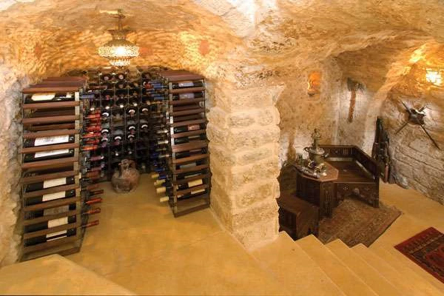 בעיקול המדרגות, בדרך לקומה התחתונה: אחד החללים האותנטים מנוצל לשמש כמרתף יינות.