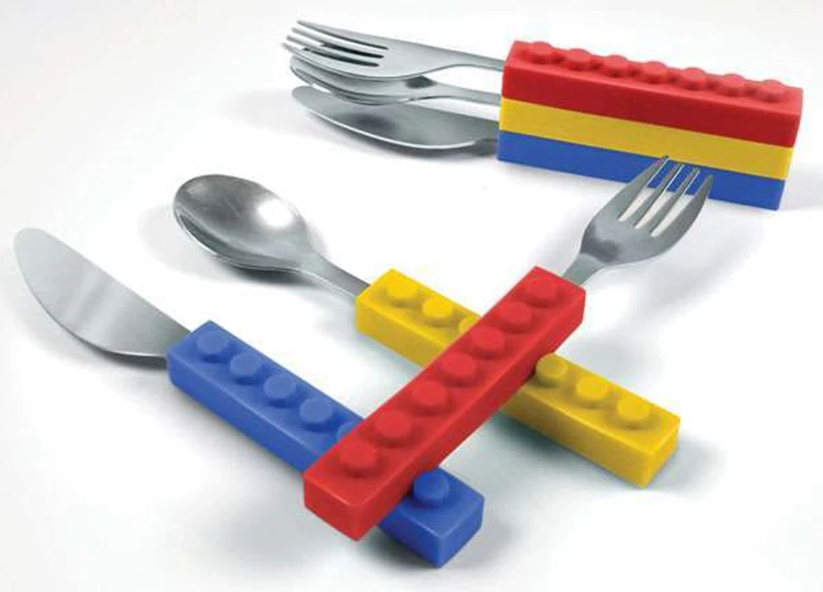 snack and stack - מערכת סכו"ם לילדים. ידיות הסכום עשויות מלגו, המאפשר את לכידתן יחדיו. שילוב של משחק עם פונקציה, מצוין לילדים, וגם לאמהות.