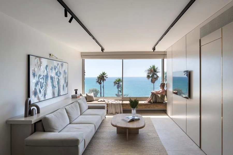 ברוכים הבאים לדירה הלא מאוד גדולה אך בהחלט מטריפה של בני זוג בשנות ה-50 לחייהם, הממוקמת במרחק של מטרים בודדים מחוף סירנית שבנתניה. השניים, תושבי ירושלים, כלל לא תכננו לבצע מהלך כה משמעותי בחייהם, אך הנוף הפנורמי החד פעמי של הים התיכון שנשקף מבעד לחלונות שבה את ליבם והם בחרו לעבור. על תכנון ועיצוב הדירה שממוקמת בבניין דירות ותיק אמונה מעצבת הפנים צביה קזיוף שמשתפת עתה בתהליך.