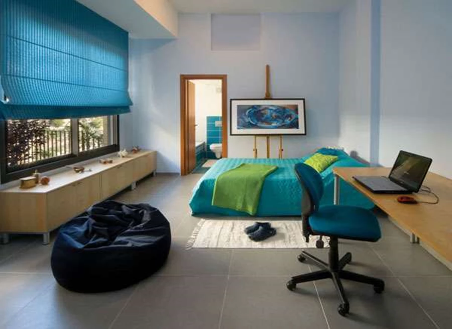 טוטל לוק מוקפד בחדרי הילדים: כחול-טורקיז בחדרו של הבן.